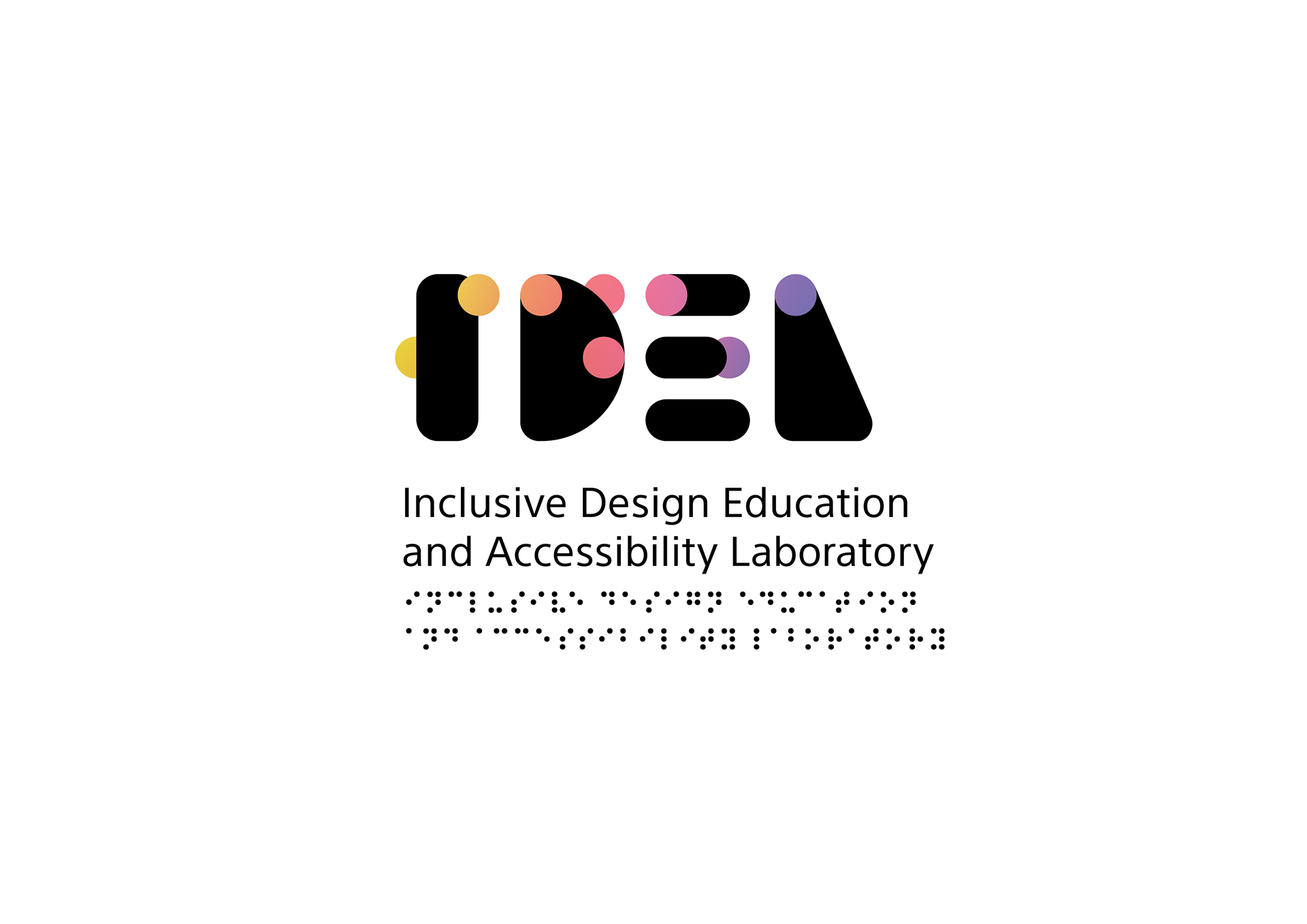 IDEA LAB is an internal workshop and laboratory focused on the study of Inclusive Design Education and Accessibility. The visual identity was centered on a logo concept derived from the braille alphabet, utilizing its inherent 2×3 grid structure as an accessible typographic system. The word 'IDEA' was translated into braille both visually and tactually, reinforcing the project’s commitment to inclusivity, legibility, and multi-sensory design principles.